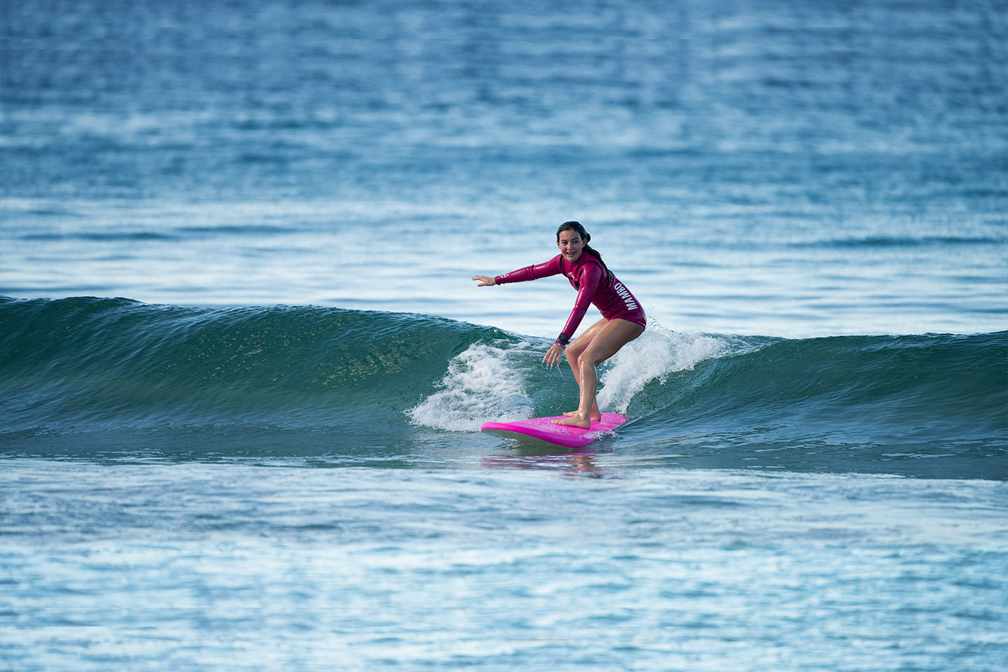 Beginner surfboards are designed to make surfing fun and simple. They have additional volume for easy paddling, and subtle design features that provide a stable platform so the rider can confidently jump to their feet. For safety reasons beginner boards are often made with softer materials, making them perfect for novice riders as they develop the basic skills of surfing and progress towards the intermediate level.